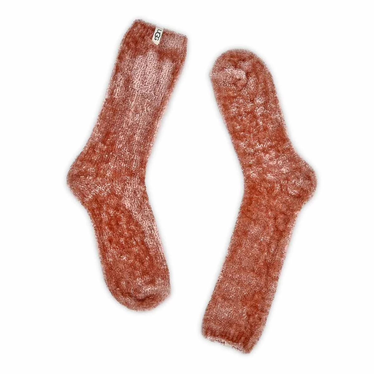 The Leda Cozy desert coral crew socks from Ugg Australia are ultra cozy crew socks that have a stretchy, soft feel that your feet will love. Great for lounging around at home, the versatile cut works equally well with boots. You will want to make the Leda Cozy crew socks from Ugg part of your must-have this for this season!